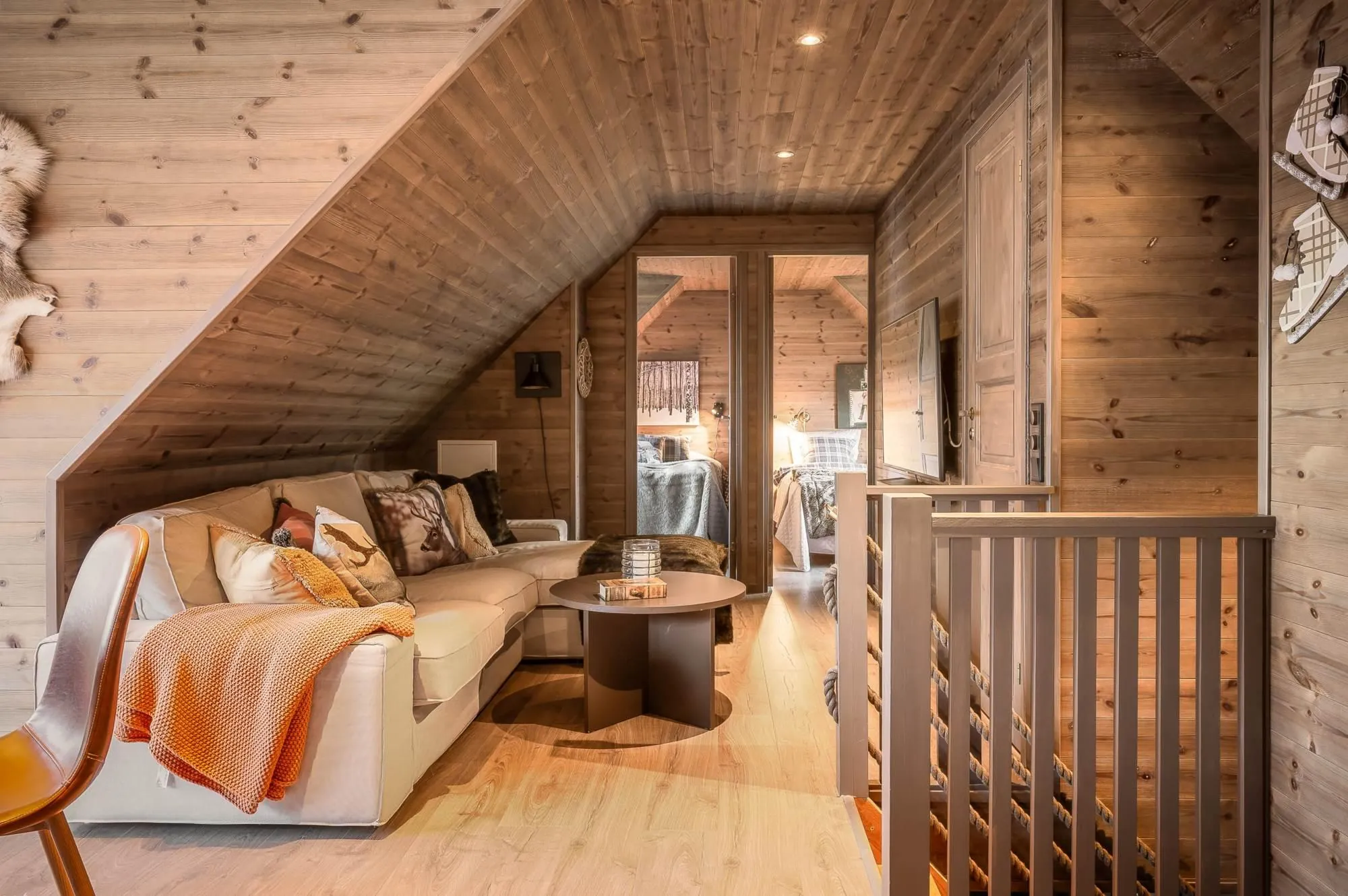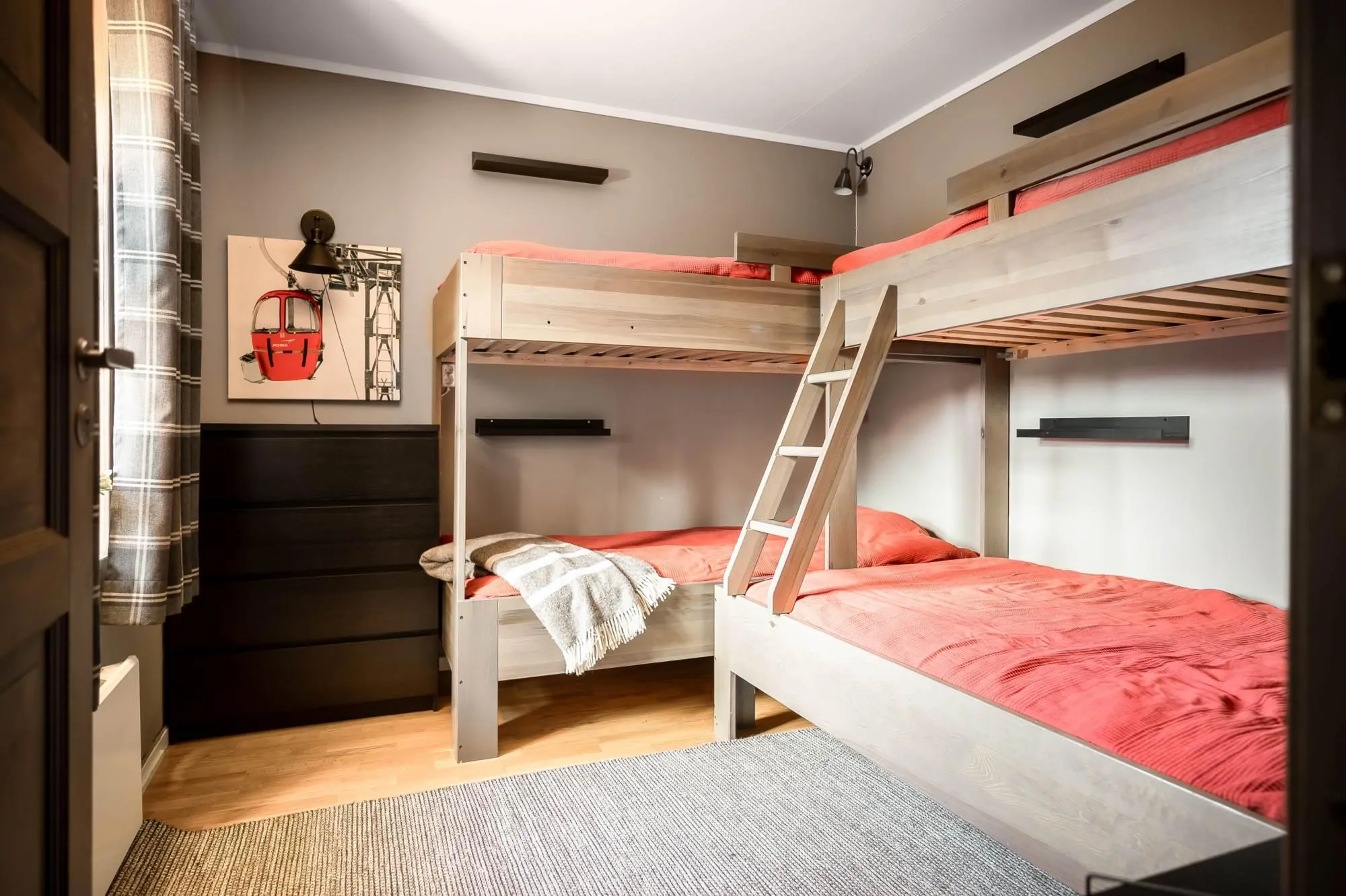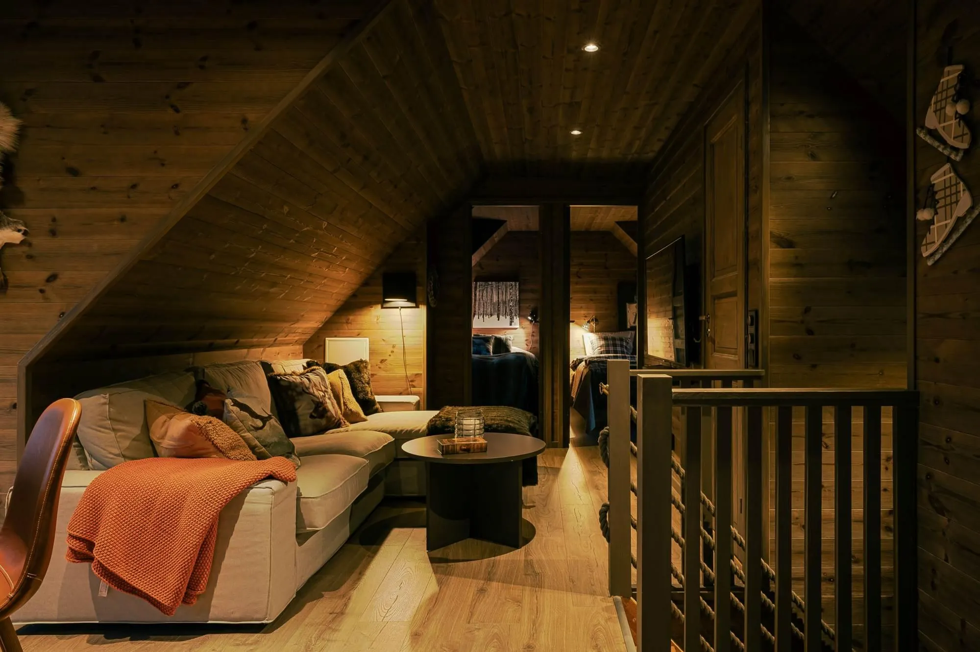 Vintergatan 737Ö is a truly exceptional mountain residence located in one of Lindvallen’s most central and sought-after areas, with ski-in access right outside the door and walking distance to Experiumtorget, Gustavtorget, shops, restaurants, and activities. The property offers six bedrooms with a total of 14 beds, generous social spaces on both floors, two bathrooms with showers (one with sauna and laundry), plus an additional WC on the upper level – ensuring comfort without crowding. Large dormer windows provide abundant natural light, full ceiling height, and stunning views toward the illuminated ski slopes in winter. The open-plan kitchen and living areas are finished in a warm lodge style with wood paneling, parkett floors, and a decorative fireplace that adds to the cozy alpine atmosphere. This apartment delivers exactly what a mountain holiday should feel like – relaxed, social, and unforgettable, with plenty of space for those who matter most.