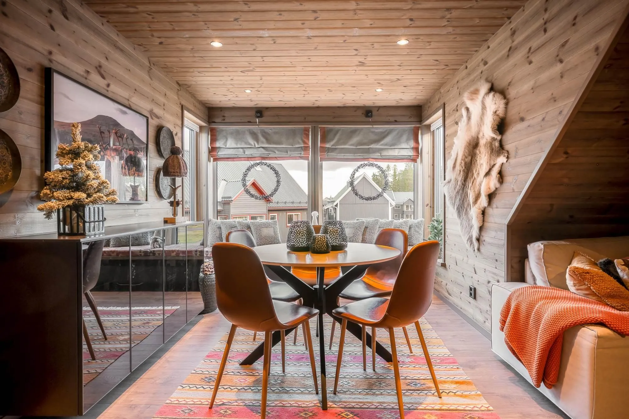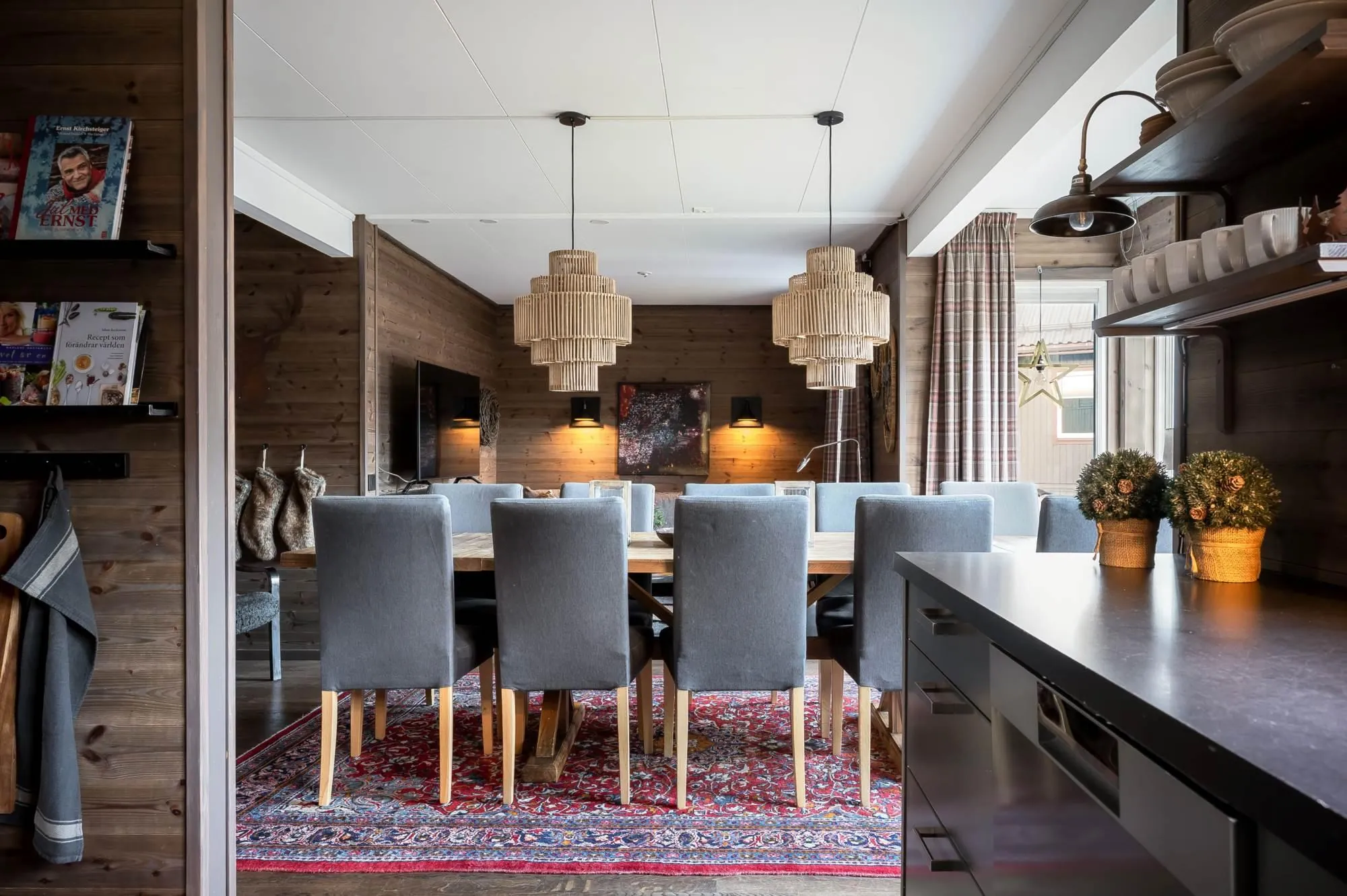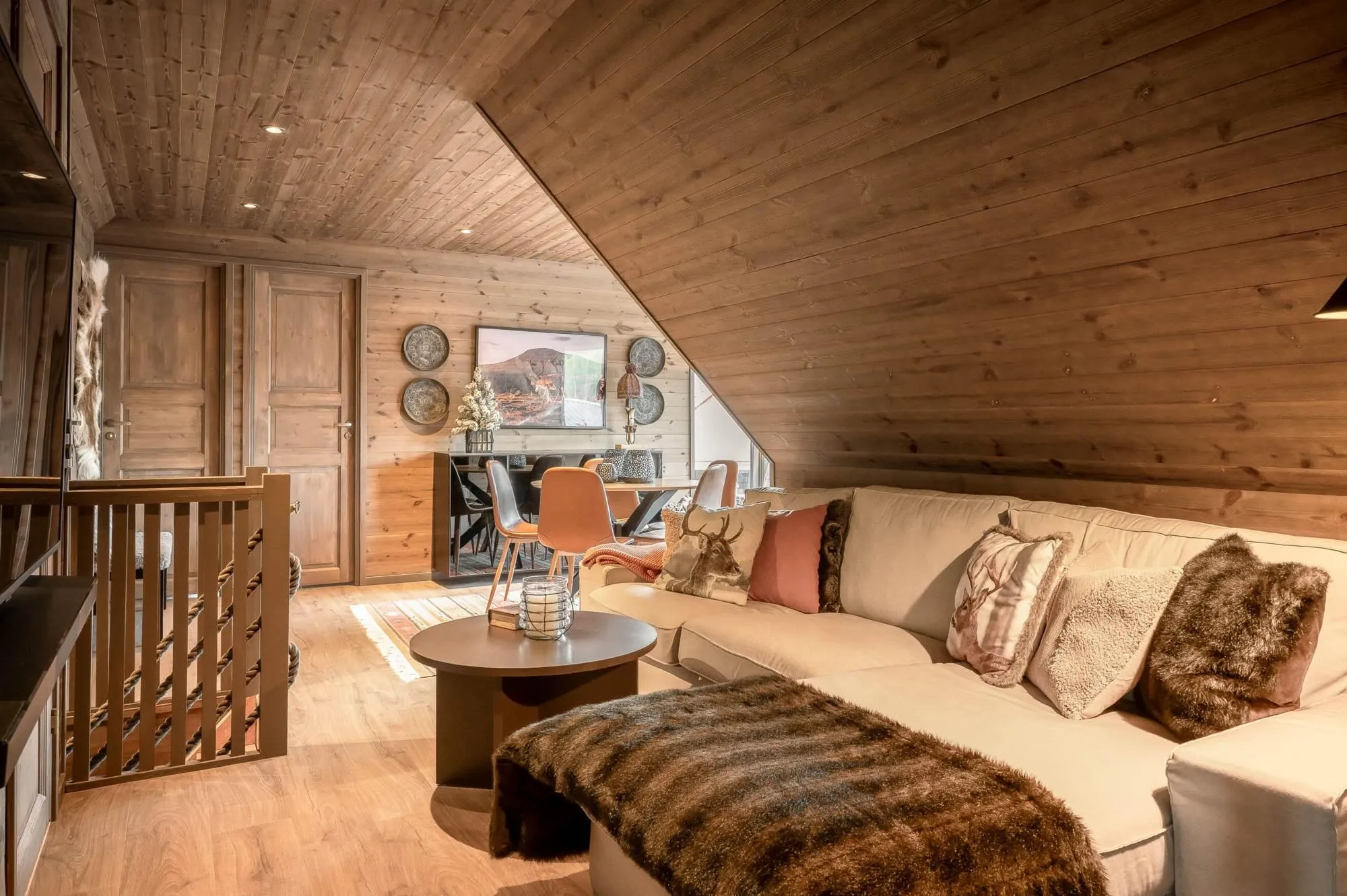 Vintergatan 737Ö is a truly exceptional mountain residence located in one of Lindvallen’s most central and sought-after areas, with ski-in access right outside the door and walking distance to Experiumtorget, Gustavtorget, shops, restaurants, and activities. The property offers six bedrooms with a total of 14 beds, generous social spaces on both floors, two bathrooms with showers (one with sauna and laundry), plus an additional WC on the upper level – ensuring comfort without crowding. Large dormer windows provide abundant natural light, full ceiling height, and stunning views toward the illuminated ski slopes in winter. The open-plan kitchen and living areas are finished in a warm lodge style with wood paneling, parkett floors, and a decorative fireplace that adds to the cozy alpine atmosphere. This apartment delivers exactly what a mountain holiday should feel like – relaxed, social, and unforgettable, with plenty of space for those who matter most.