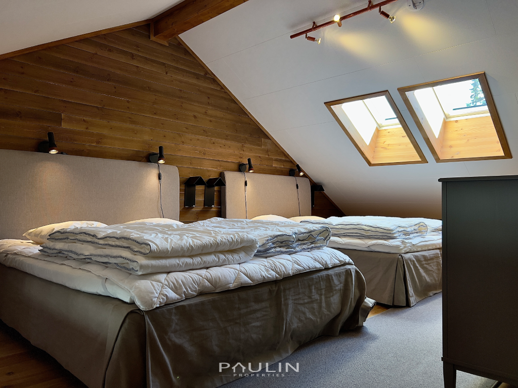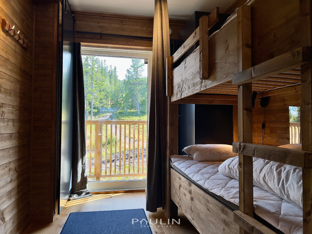 Set high on the mountain with panoramic views of one of Lindvallen’s best slopes, this sleek three-floor apartment is designed for families and groups seeking both luxury and convenience. Hosting up to 10 guests across four modern bedrooms and two high-standard bathrooms, the home combines elegant design with thoughtful amenities. After a day on the slopes, unwind in the private sauna or gather by the cozy fireplace. The spacious ski storage room with boot dryers ensures comfort and ease, while three terraces and balconies let you soak in the alpine atmosphere. With ski-in/ski-out access, stylish interiors, and a prime location close to everything, this property is a true alpine retreat — perfect for family getaways or group adventures.