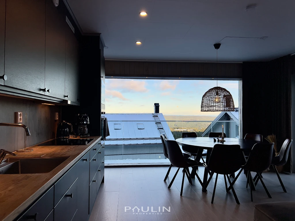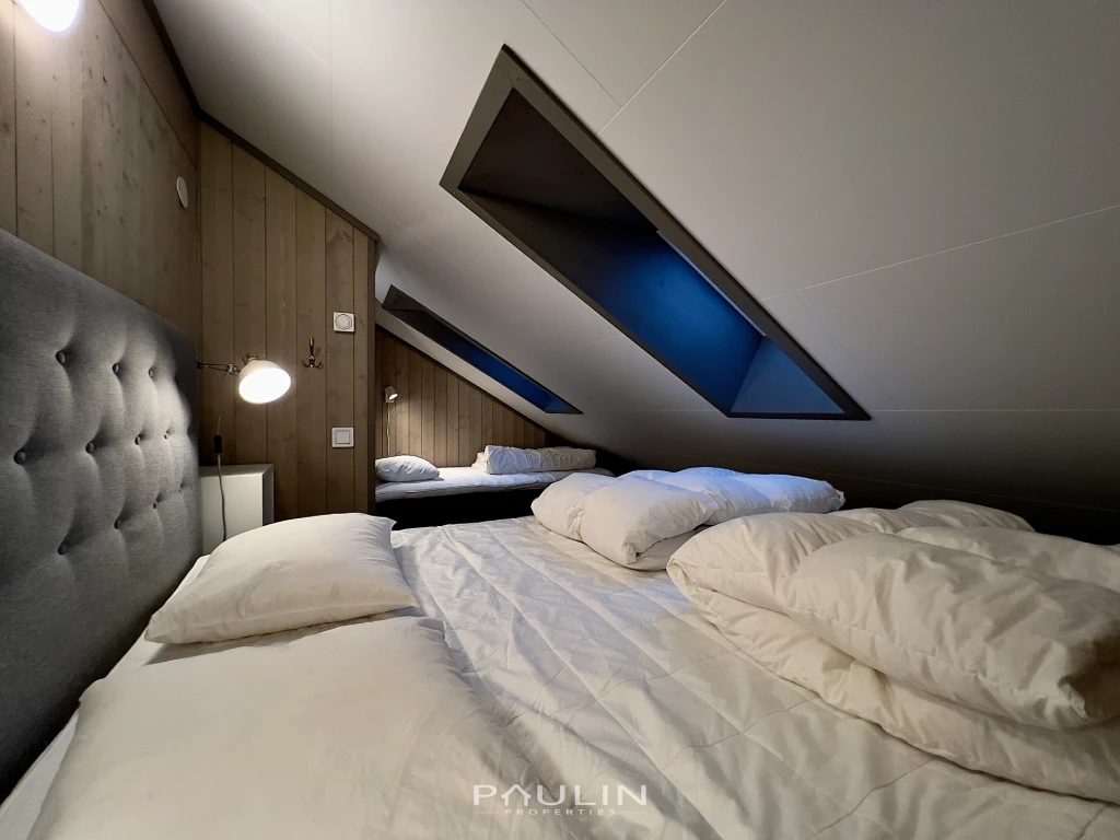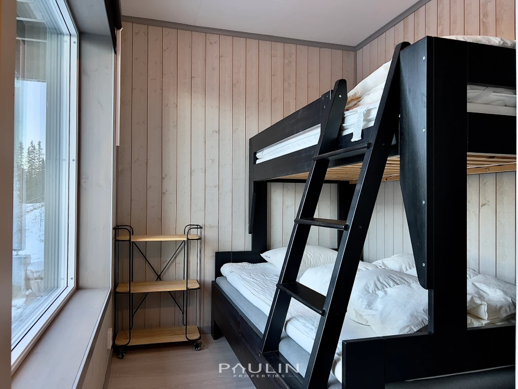 This luxurious three-floor apartment sits high on the mountain near the ski slope, offering a sweeping panoramic view of Sälen. With four bedrooms (two king beds, two bunk beds, and two single beds), two living rooms, and generous sleeping arrangements, it’s perfect for larger groups or two families. Amenities include a sauna, shower, washing machine, dryer, WC, fully equipped kitchen, terrace, and a boot dryer in the entrance—everything you need for an upscale alpine retreat.